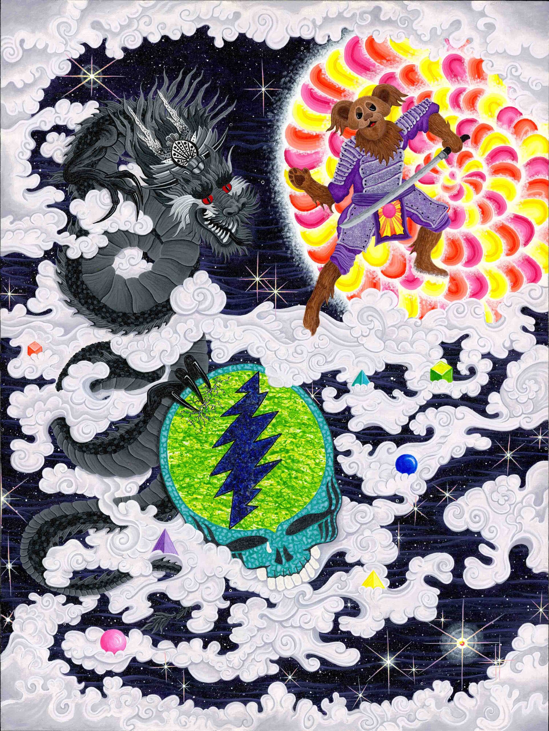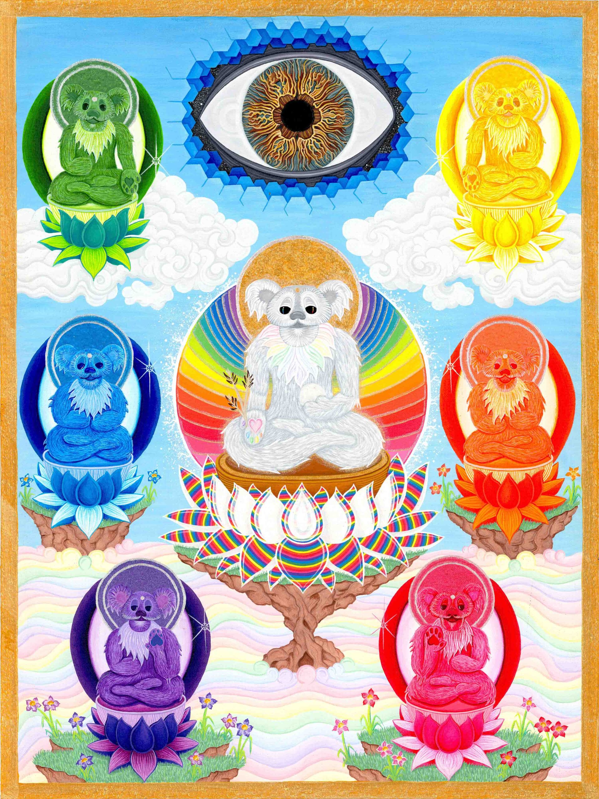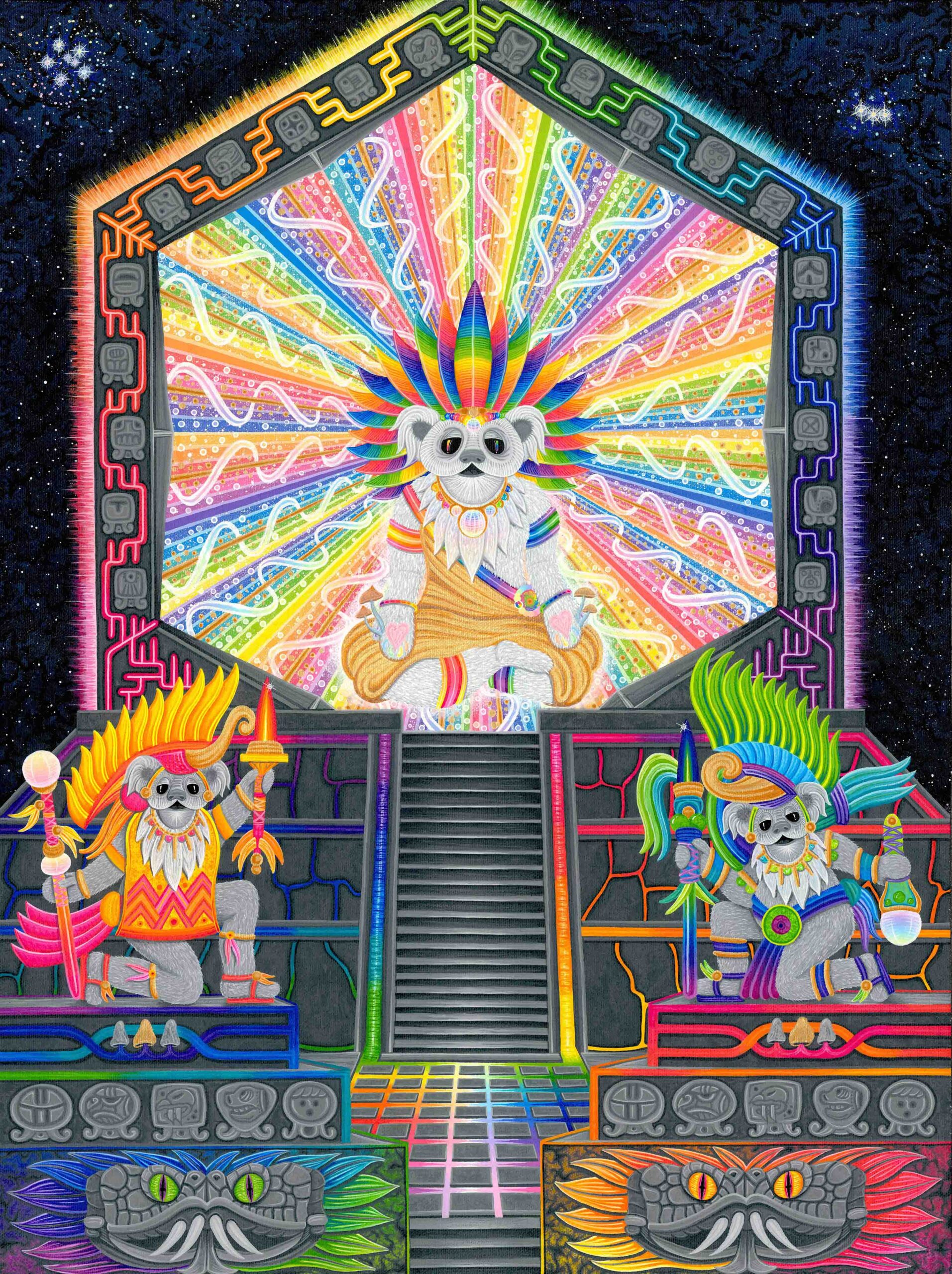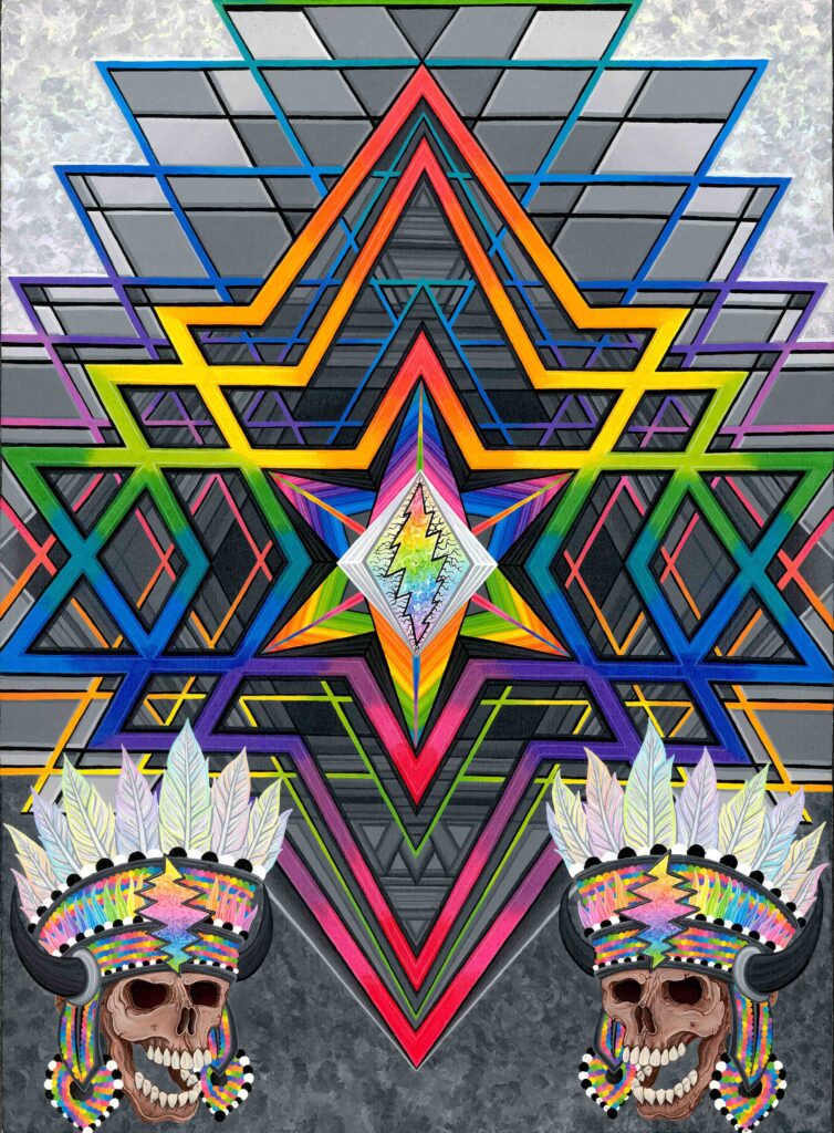 I’m Sean “Sugar Bear” Savage, I’m 30 years old and I’ve been painting for over 10 years and professionally for 5, my works include philosophical interpretations of some remarkable fundamental truths, I use iconography from ancient teachings, as well as cultural icons from today as my painting elements, I’ve combined and used vibrant color to grab your eyes and exquisite detail to draw you in close, my compositions will excite the mind and dazzle the imagination. It’s my sincere hope that people of all walks of life enjoy and find some type of hope in my stories, gratefully Sean “sugar bear” Savage