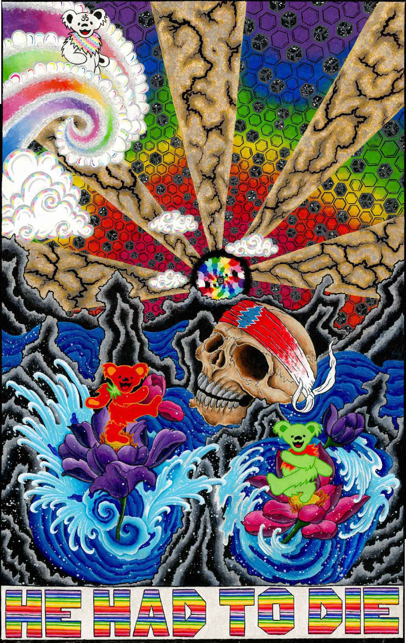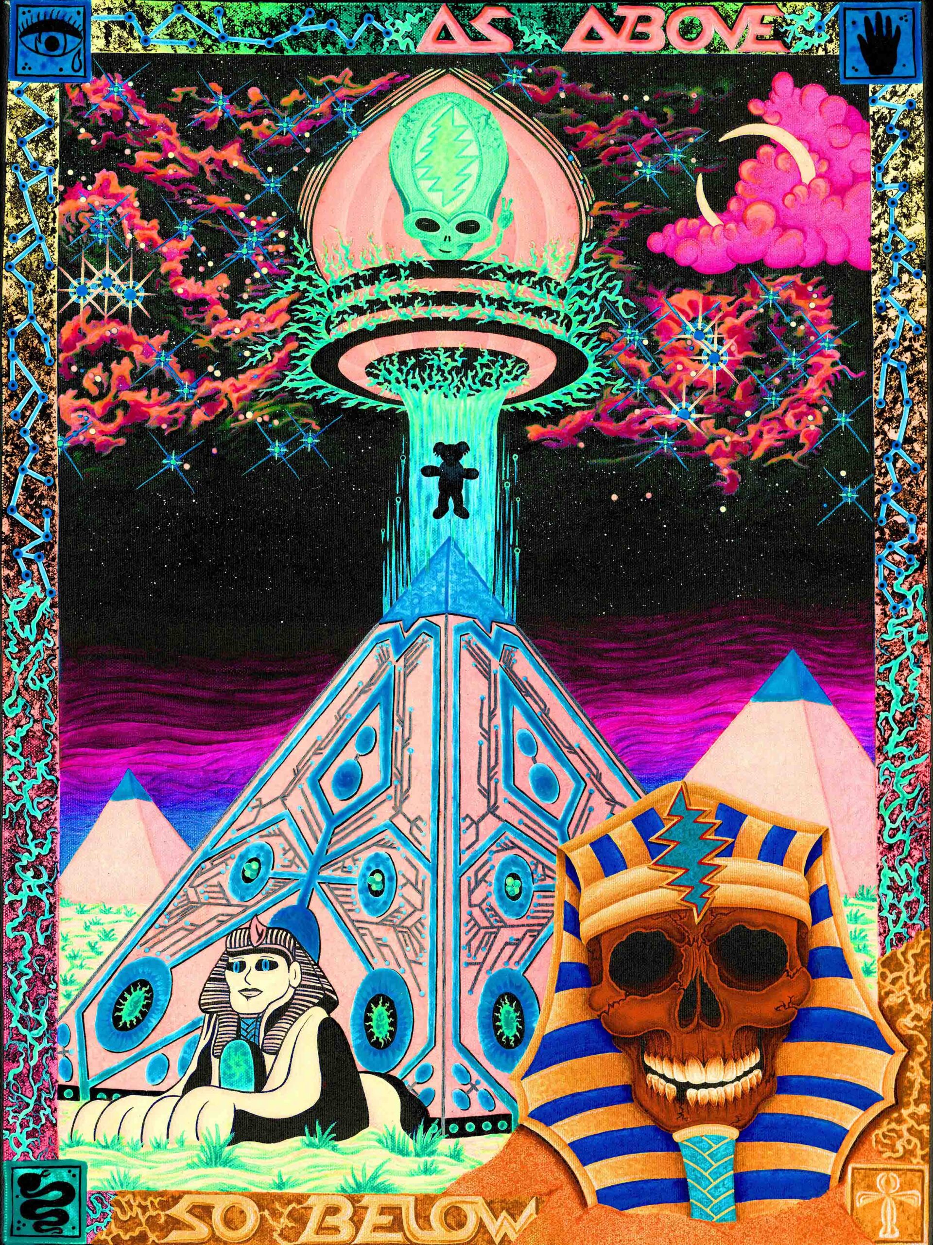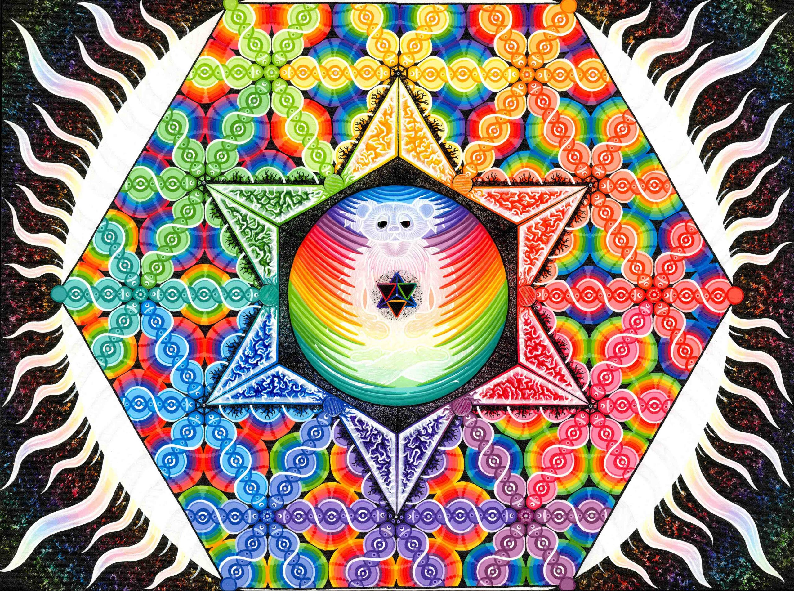 I’m Sean “Sugar Bear” Savage, I’m 30 years old and I’ve been painting for over 10 years and professionally for 5, my works include philosophical interpretations of some remarkable fundamental truths, I use iconography from ancient teachings, as well as cultural icons from today as my painting elements, I’ve combined and used vibrant color to grab your eyes and exquisite detail to draw you in close, my compositions will excite the mind and dazzle the imagination. It’s my sincere hope that people of all walks of life enjoy and find some type of hope in my stories, gratefully Sean “sugar bear” Savage